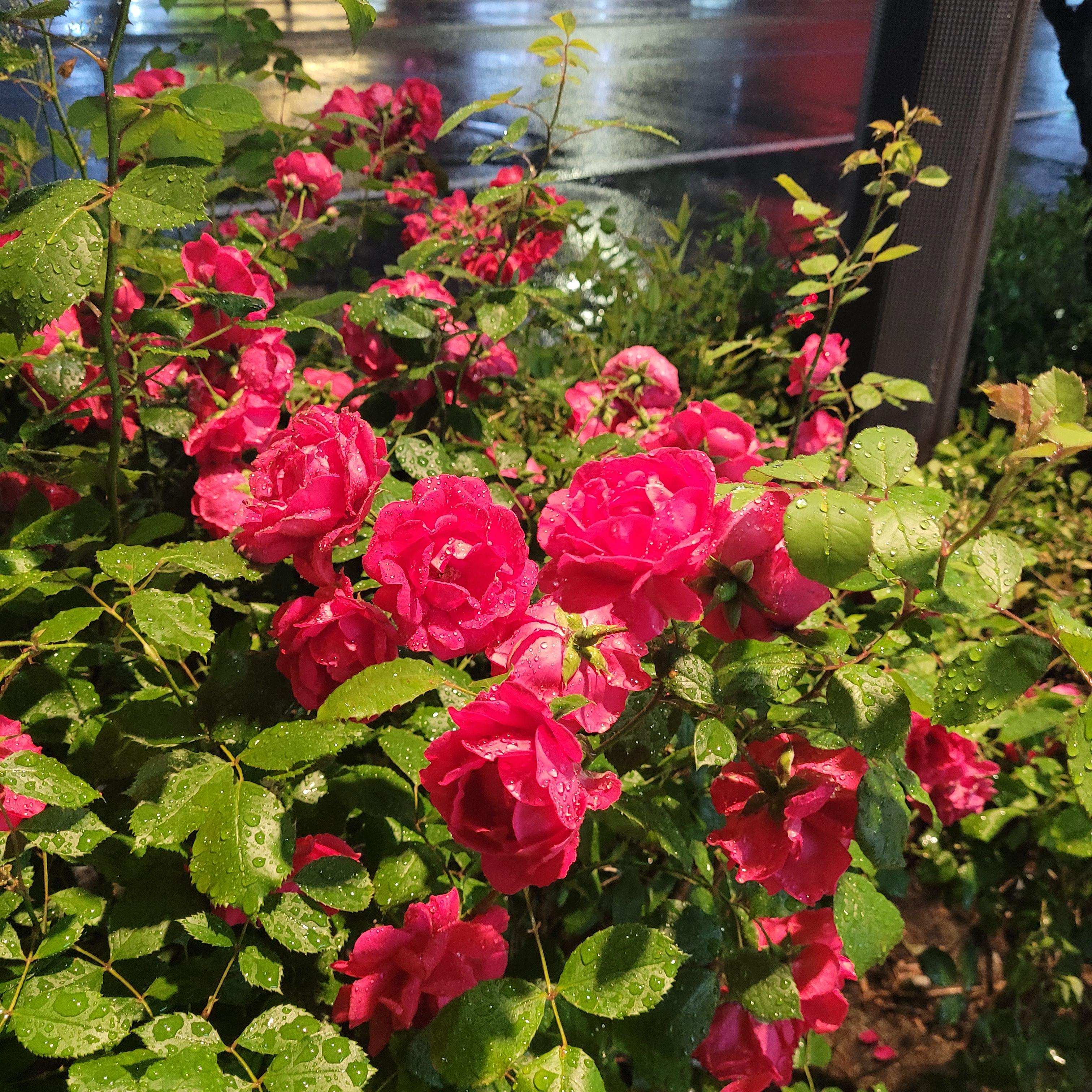 비를 뚫고 배스킨 라빈스 파인트를 사러 가다 만난 장미들. 저녁의 장미지만 왜인지 새벽의 장미 같았다.
